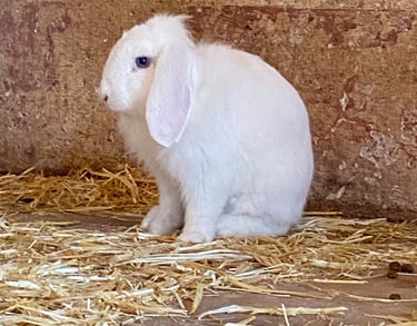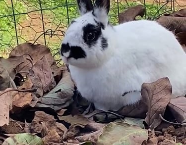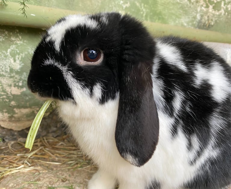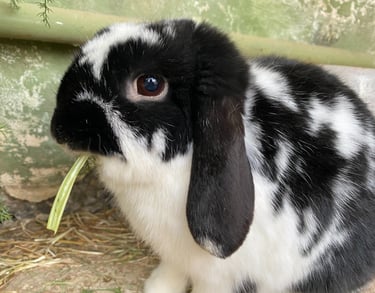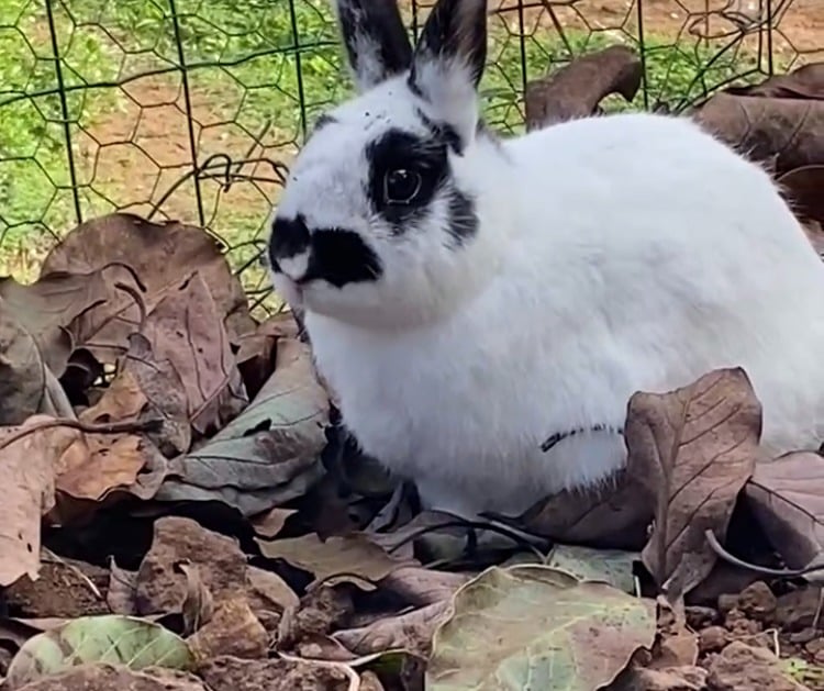 Luna apareció abandonada en el monte en una noche de luna llena, junto con otros 12 conejos de la misma raza. Posiblemente víctima de un criadero ilegal de conejos para venderlos a tiendas de animales. Es una coneja muy dócil, muy sociable y le encanta comer pepino.