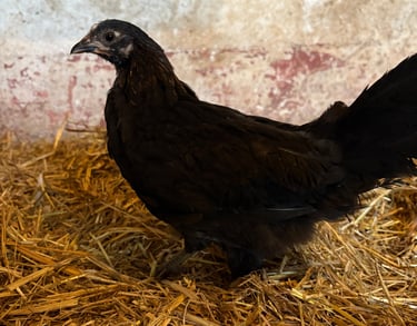 Es una gallina kíkere, y a diferencia de las otras, es una especie a la que le gusta vivir en las alturas, lo mismo está sobre el techo de su caseta que sobre el gallinero.