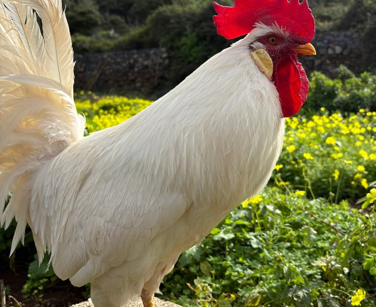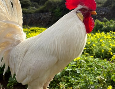 Este gallo llegó siendo un pollo que encontró una voluntaria del Santuario mientras paseaba a su perro. Lo recogió y nos lo trajo. Es un gallo muy sociable y cariñoso.