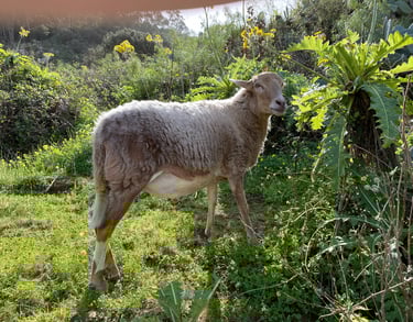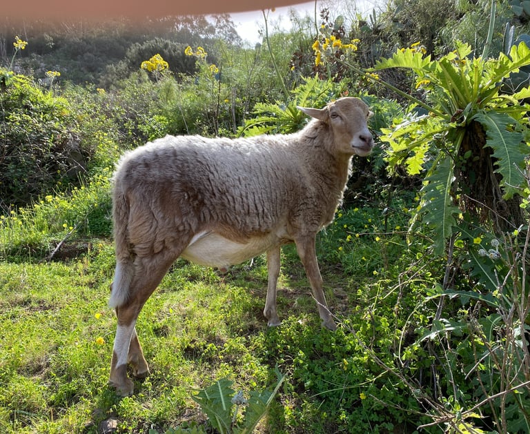 Tofu es un carnero de raza pelibuey, es muy tranquilo y sociable.
