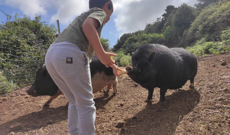 El Santuario es el espacio donde conviven diferentes especies de animales, que reciben los cuidados necesarios para tener una vida digna y feliz. Aquí viven en un entorno natural, libre de explotación y con todo el amor que necesitan.